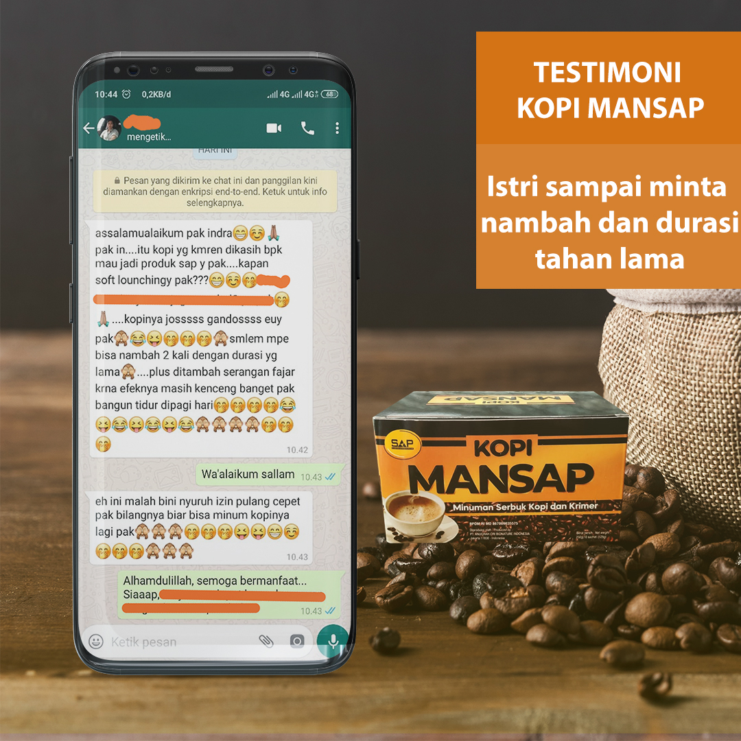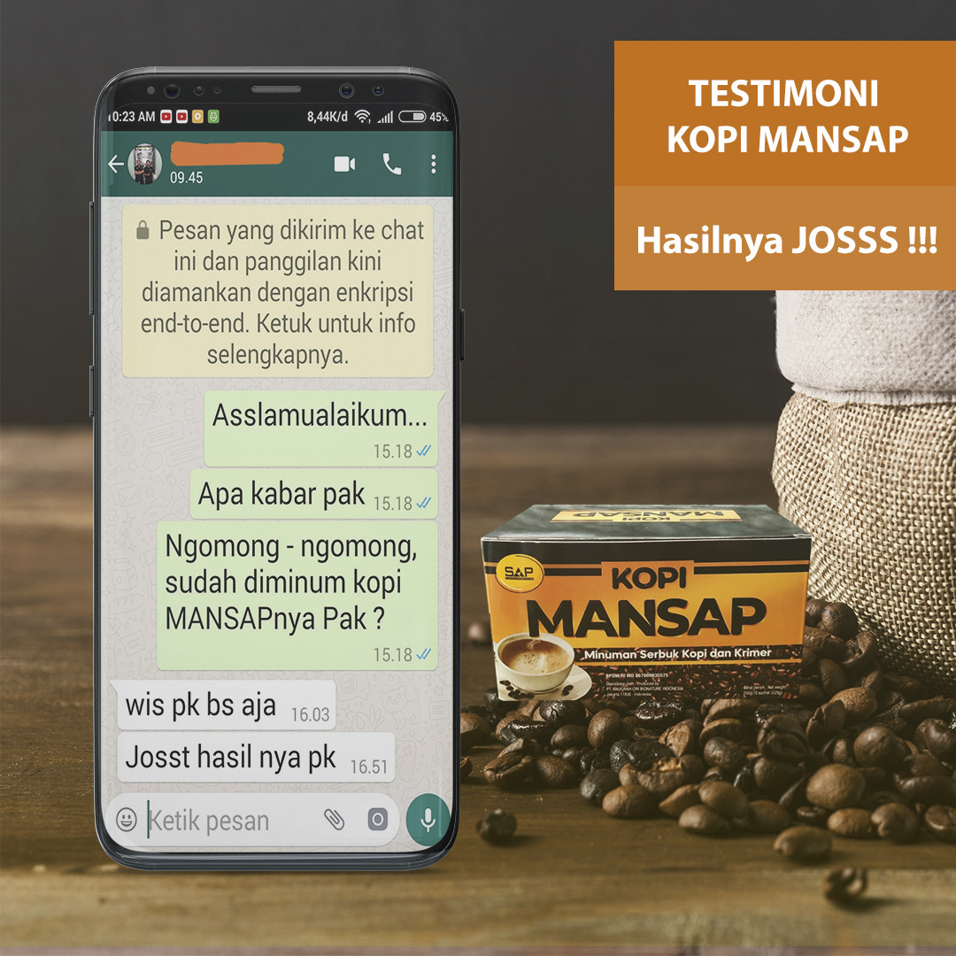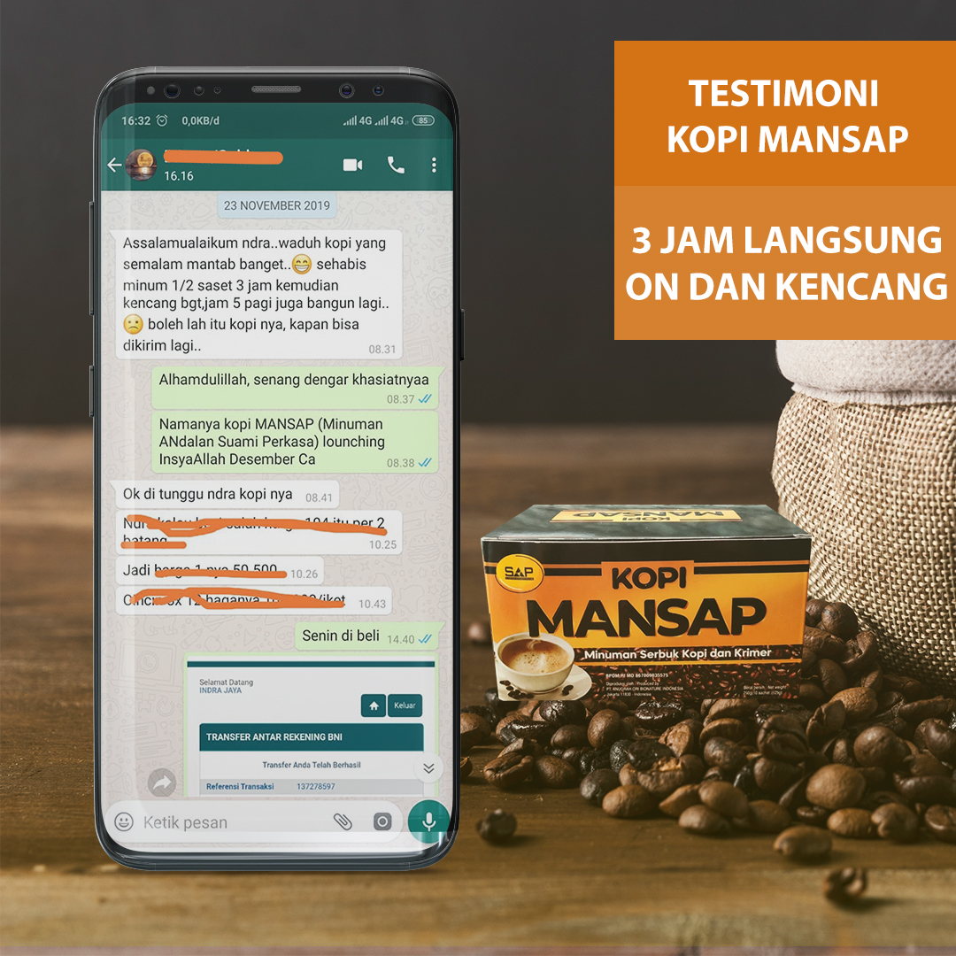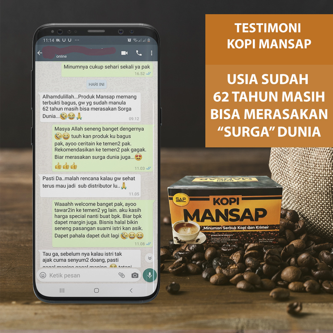INGAT….Kunci dari efektifitas KOPI MANSAP adalah "beri waktu" agar ramuan meresap sempurna di aliran darah didalam tubuh Anda.